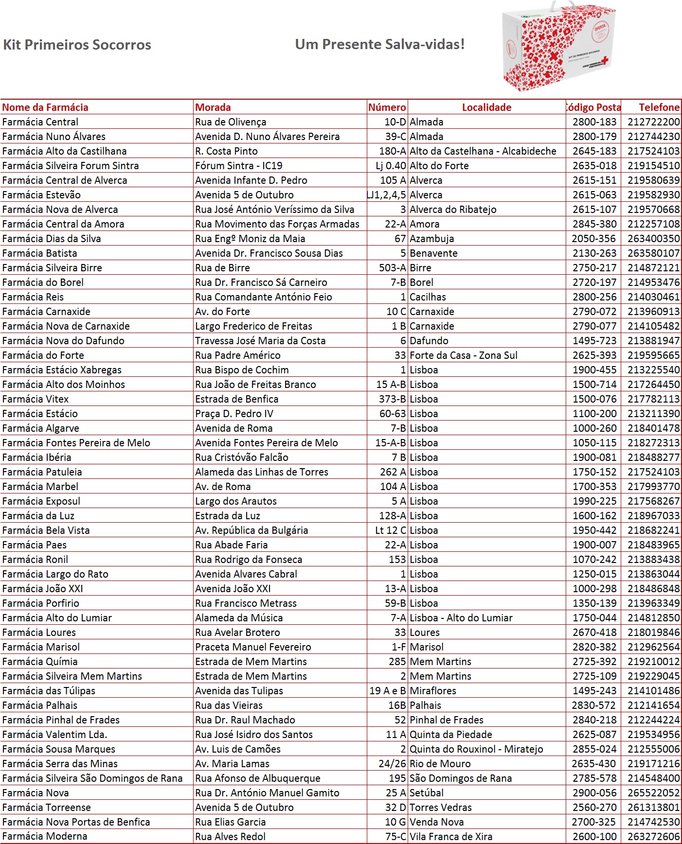 Nota: para além das farmácias aderentes, este Kit encontra-se à venda no Hospital da CVP e na Escola de Socorrismo CVP, ambos em Lisboa.
